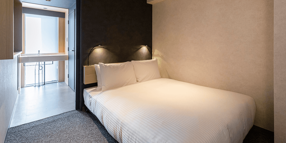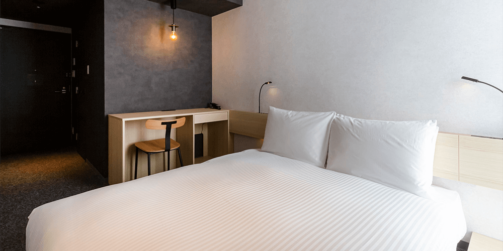 出張などのビジネス利用やカップルでのご利用にも便利な、デスク付のお部屋です。広々とした160cm幅のベッドが、快適な睡眠をお約束いたします。シャワー・洗面・トイレは充実しており水回りも安心です。