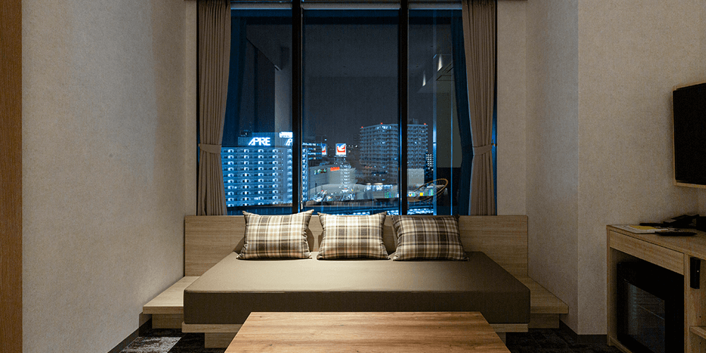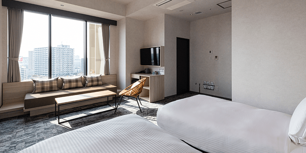 当ホテルで1番の広さに加え、デイベッド・クローゼットを備えたお部屋です。ご家族やご友人との観光やビジネス利用等、幅広いニーズにお応えします。浴室はバスタブ付で快適なご滞在をサポートいたします。