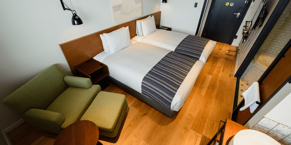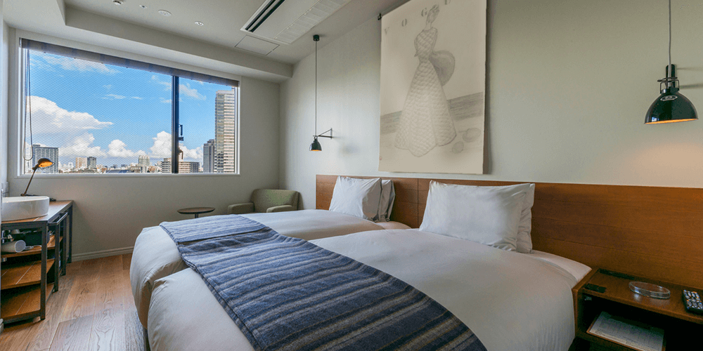 12階に位置するゆったりとした1室だけのツインルーム。