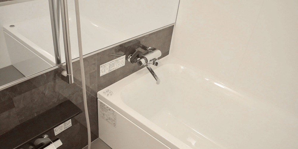 バスタブと洗い場が分かれた浴室。広めのバスタブはお2人でもお入りいただけます。